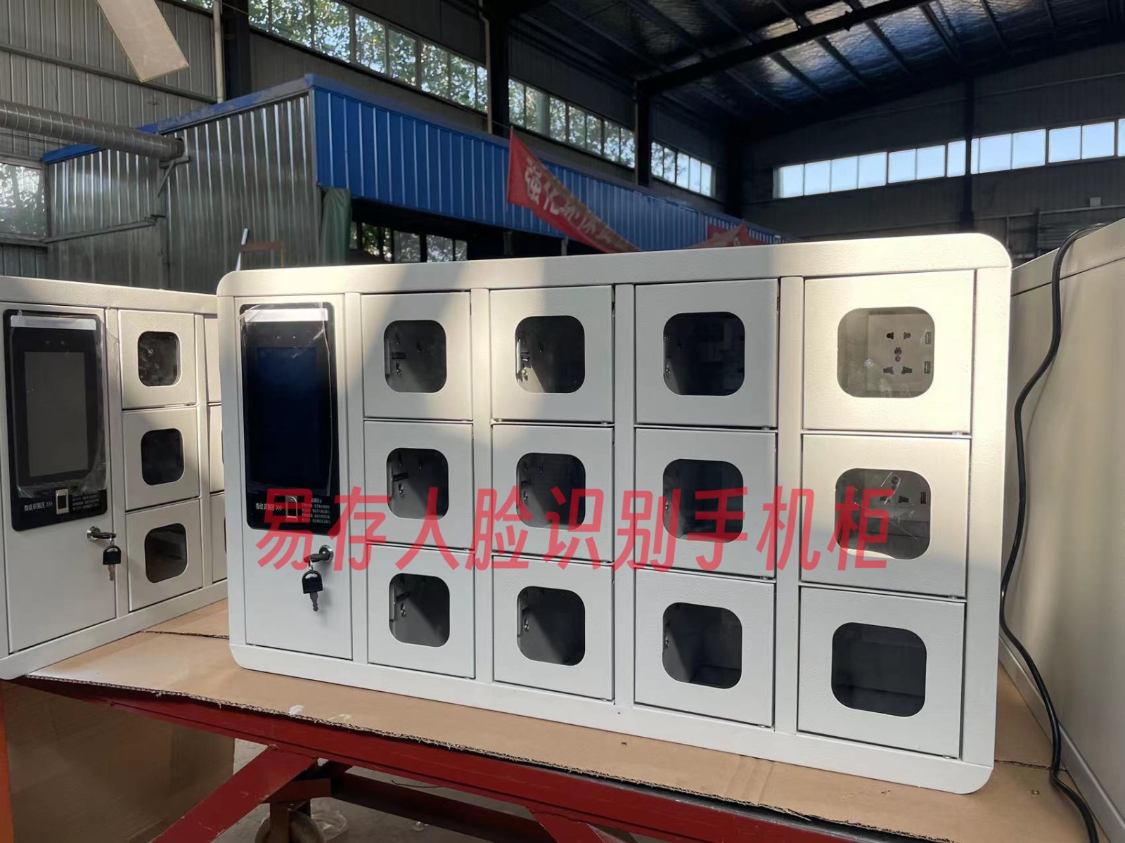 智能手机充电柜,充电存放二合一。 插电即用,可见视窗。可内置多孔插座,7寸高清触摸屏。动态摄像头可抓怕。存取可查询。