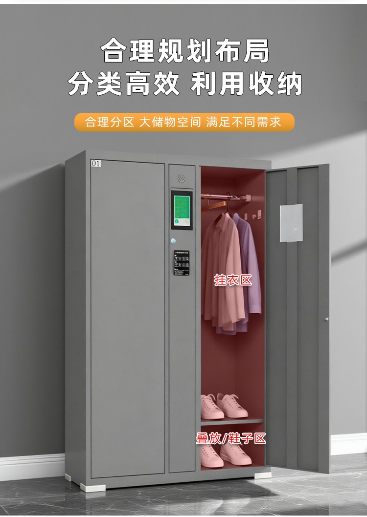 人脸识别衣柜可通过刷脸进行物品存取,通常支持专人专用(固定人员)和随机分配(流动人员)两种管理模式。